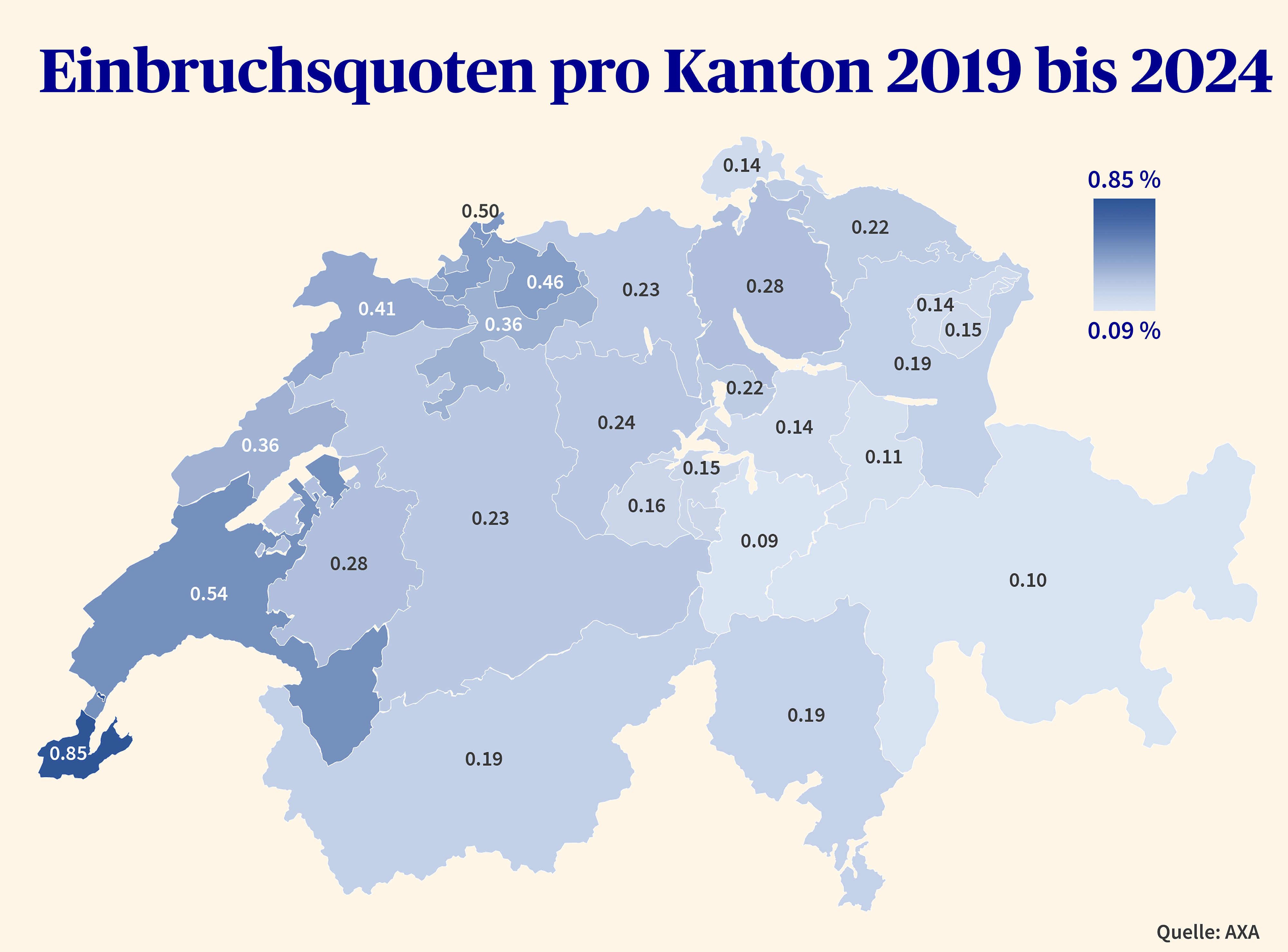 Einbruchsquoten pro Kanton 2019 bis 2024