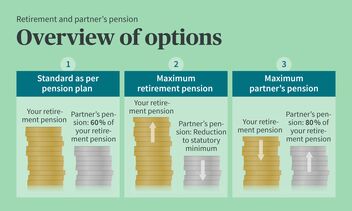 If the recipient of a retirement pension dies, the partner is entitled to a partner pension under the 2nd pillar provided the requirements set out in the occupational benefits fund regulations are met. In the event of death, the partner pension then replaces the retirement pension that has been paid out until that point and is in turn paid out to the surviving partner.