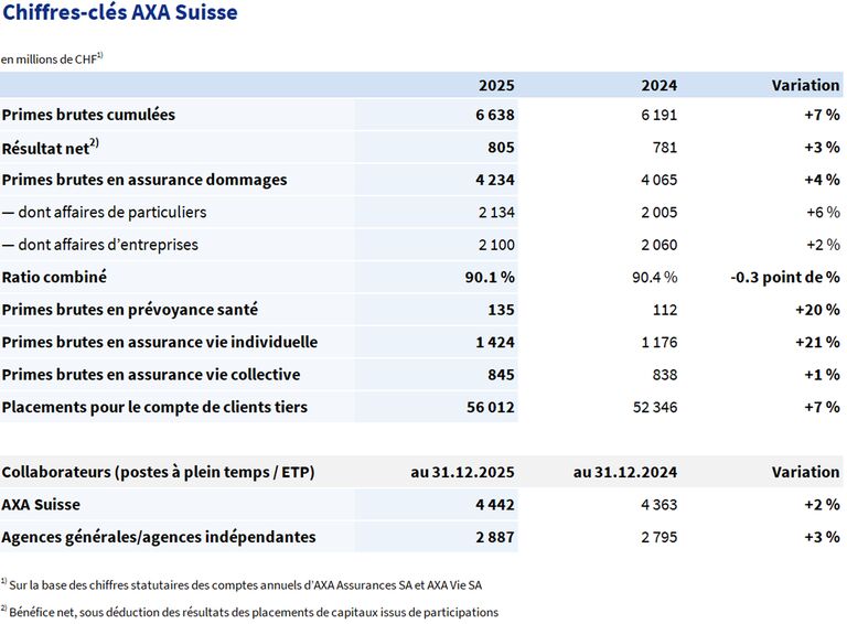 - Durant l’exercice 2025, le volume d’affaires d’AXA Suisse a augmenté de 7% pour atteindre CHF 6,6 milliards.