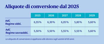Con l’adeguamento dell’aliquota di conversione al 5,6% è possibile ridurre sensibilmente la ridistribuzione. Questo rinsalda l’equità tra le generazioni all’interno della fondazione e garantisce la sua stabilità finanziaria e la sua attrattiva a lungo termine.
